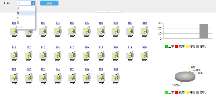 系統(tǒng)根據(jù)按車(chē)間級(jí)、廠級(jí)、集團(tuán)級(jí)等不同級(jí)別提供相應(yīng)的設(shè)備運(yùn)行狀態(tài)畫(huà)面。